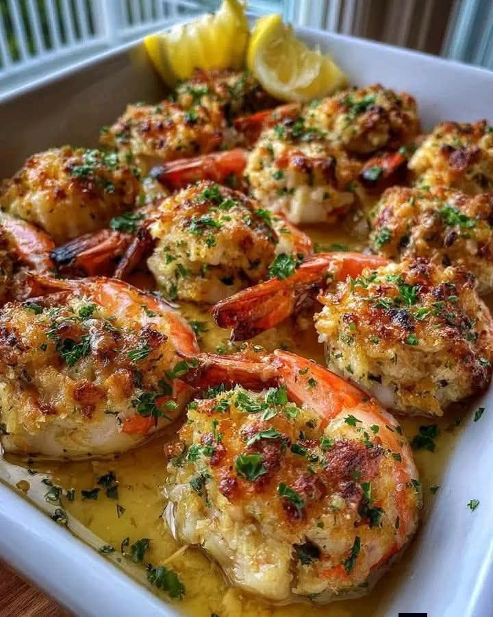 Baked stuffed shrimp is a classic, slightly fancy dish—large shrimp filled with a buttery, flavorful stuffing and baked until golden. It’s surprisingly easy to make at home.