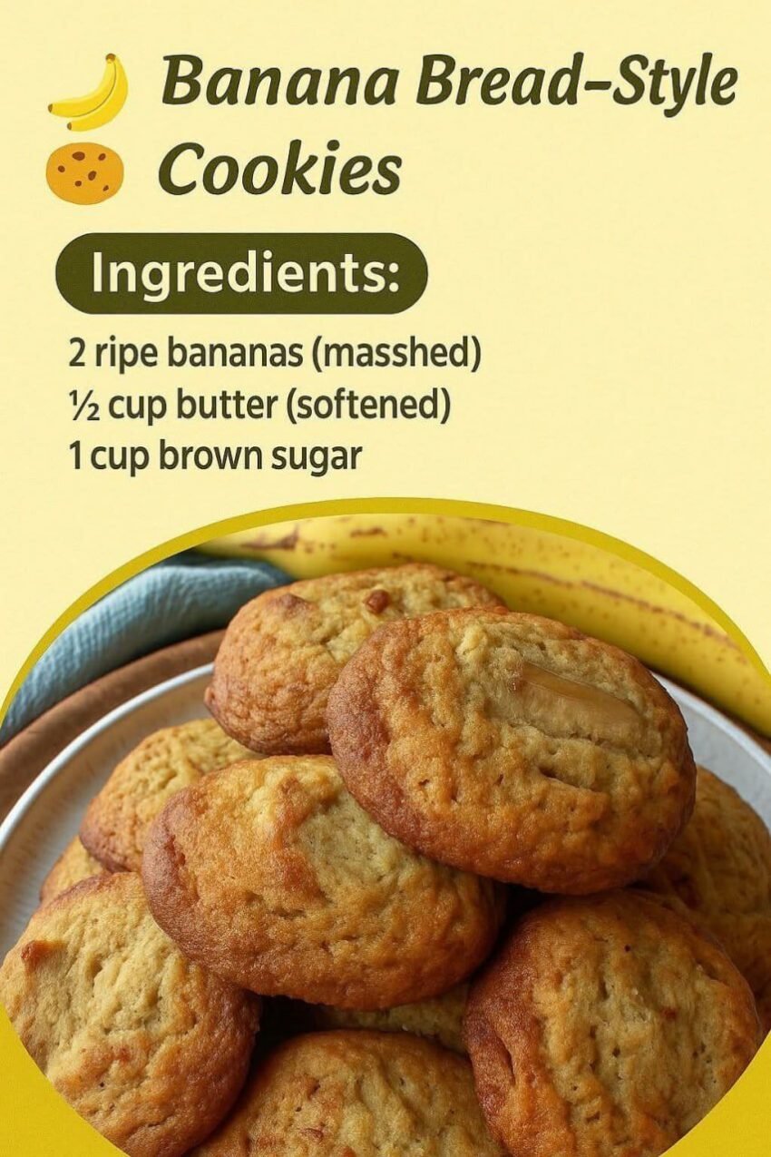 Here’s a soft, sweet bake you’ll love: banana bread cookies—they taste like banana bread but in chewy cookie form.