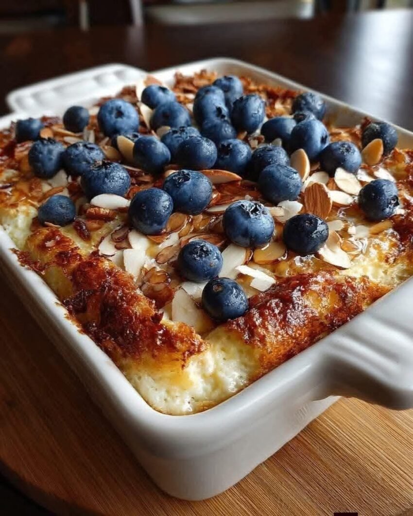 Here’s a delicious Blueberry Almond Breakfast Casserole — sweet, nutty, and perfect for mornings or brunch 🍇🌰🍳