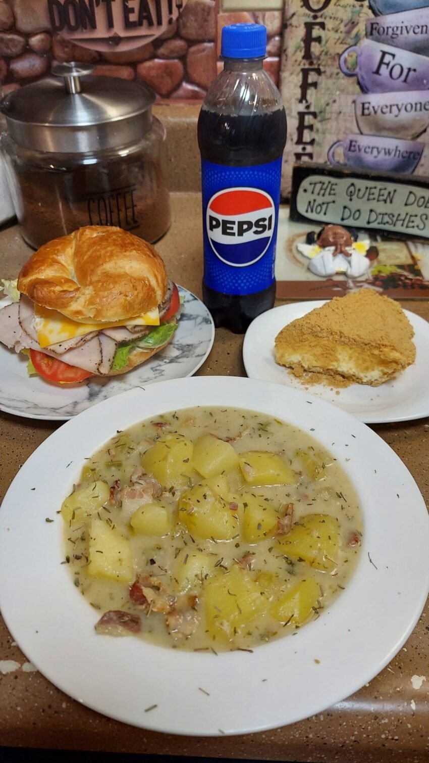 - 🧄 Garlic potato dill soup with butter.