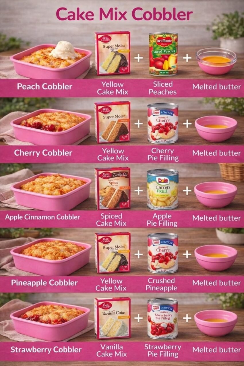 Cake Mix Cobbler is a super simple, crowd-pleasing dessert. It combines store-bought cake mix with fresh or canned fruit for a quick, soft, gooey cobbler.
