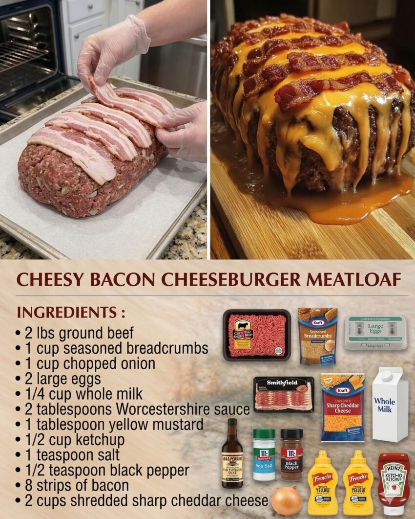 Here’s a mouthwatering recipe for Cheesy Bacon Cheeseburger Meatloaf—a perfect comfort food that combines juicy ground beef, melted cheese, and smoky bacon.