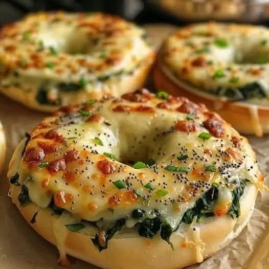 🥯🧀 Cheesy Spinach-Artichoke Bagels