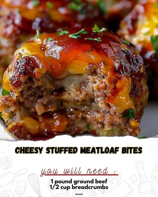 Ooo, Cheesy Stuffed Meatloaf Bites—savory, gooey, and perfect as an appetizer or snack! Here’s a full recipe: