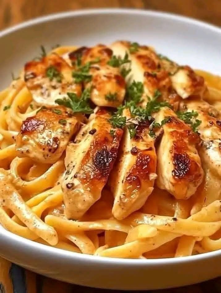 A rich, creamy pasta dish with tender chicken and a classic Parmesan cream sauce — restaurant-style comfort food at home.