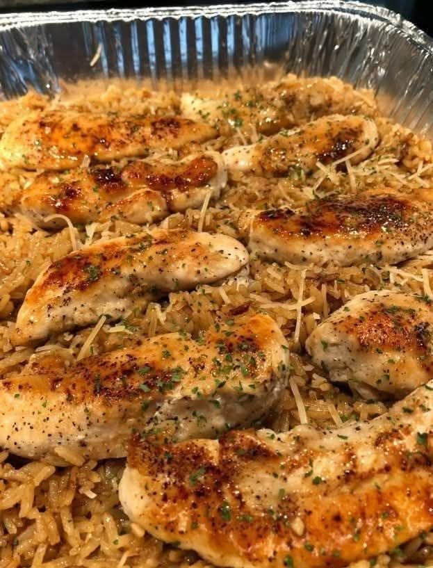 Love it so much you said it twice 😄 — here’s a full, comforting recipe for Chicken with Garlic Parmesan Rice. Creamy, savory, and perfect for a weeknight dinner.