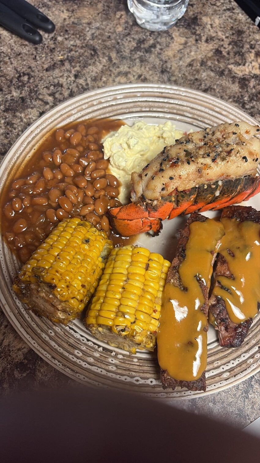 • Jerk Chicken with Garlic Shrimp: spicy Caribbean jerk chicken + garlic shrimp.