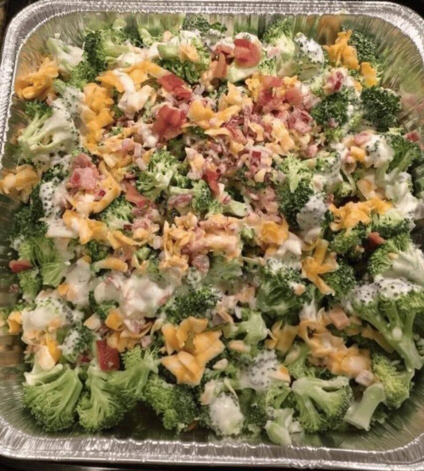 Here’s a classic Broccoli Salad recipe—the type often seen at potlucks and gatherings in those large foil trays. It’s crunchy, creamy, and slightly sweet.