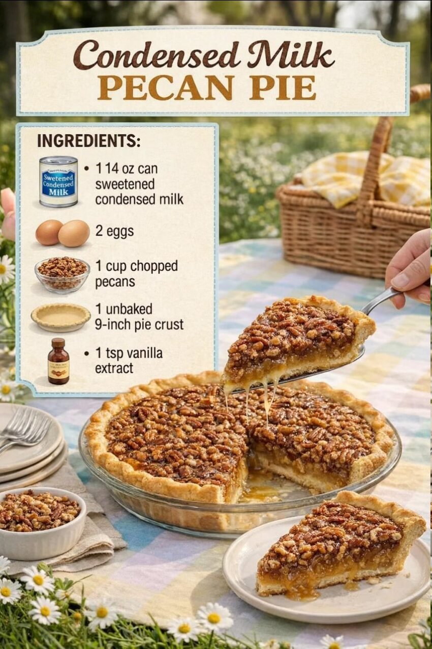 Here’s a rich, sweet dessert: condensed milk pecan pieβ€”a creamy, caramel-like filling packed with crunchy pecans in a buttery crust.