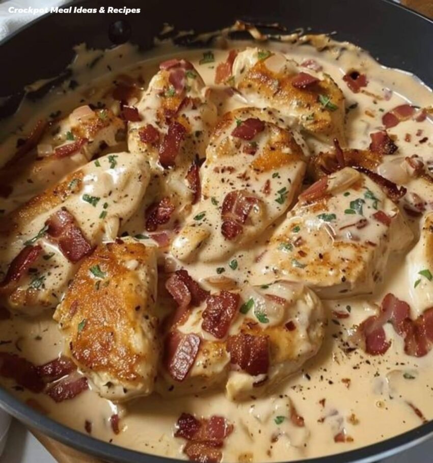 Oh yes 😏—that sounds like a comfort food dream: creamy, cheesy, and loaded with bacon and tender chicken. Here’s a full recipe you can make in the slow cooker or stovetop: