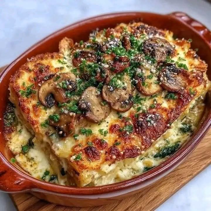 Here’s a rich, vegetarian-friendly Creamy Mushroom and Spinach Lasagna recipe — layers of tender noodles, earthy mushrooms, spinach, and creamy cheese sauce.