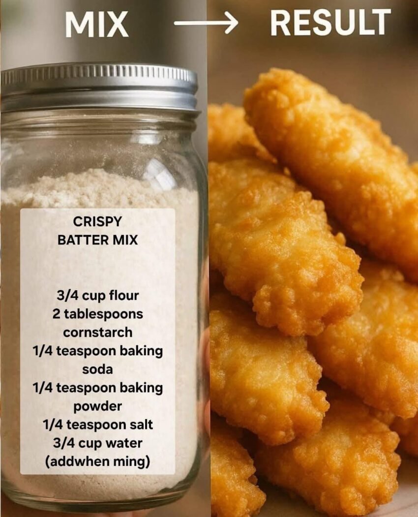 Ah, a crispy batter mix—perfect for fried chicken, fish, vegetables, or even fritters 🍗🐟🥦. Here’s a versatile, crunchy, golden batter you can mix up in minutes: