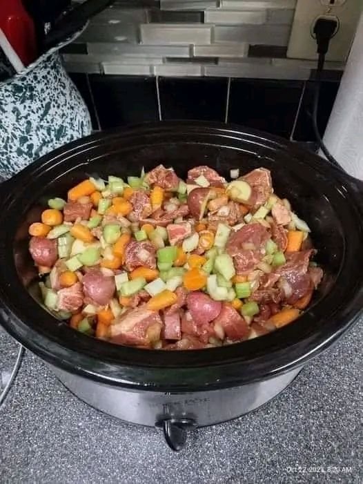 • Cover and cook on low for 7–8 hours or high for 4–5 hours until beef is tender and vegetables are cooked.