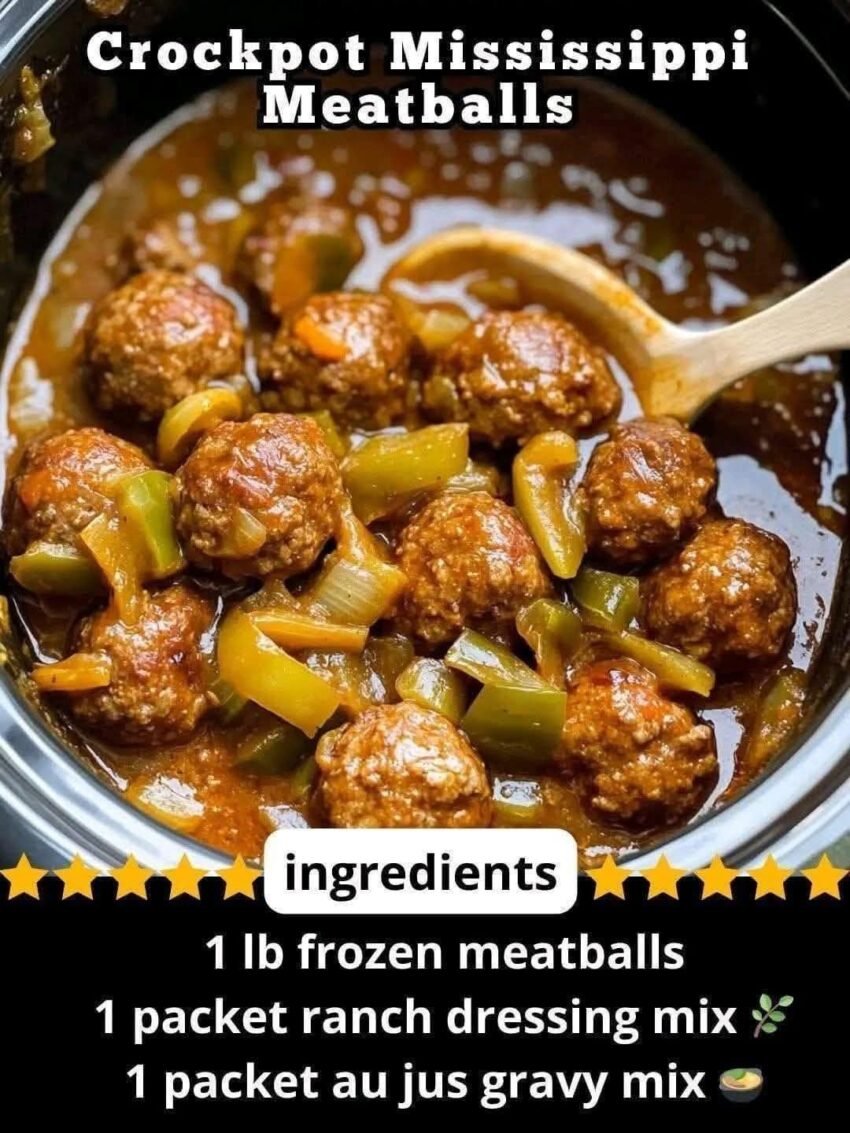 Oh yes 😄 Crockpot Mississippi Meatballs are the ultimate comfort food—juicy, tender meatballs in a buttery, tangy, slightly spicy sauce, all cooked low and slow. Here’s a full recipe: