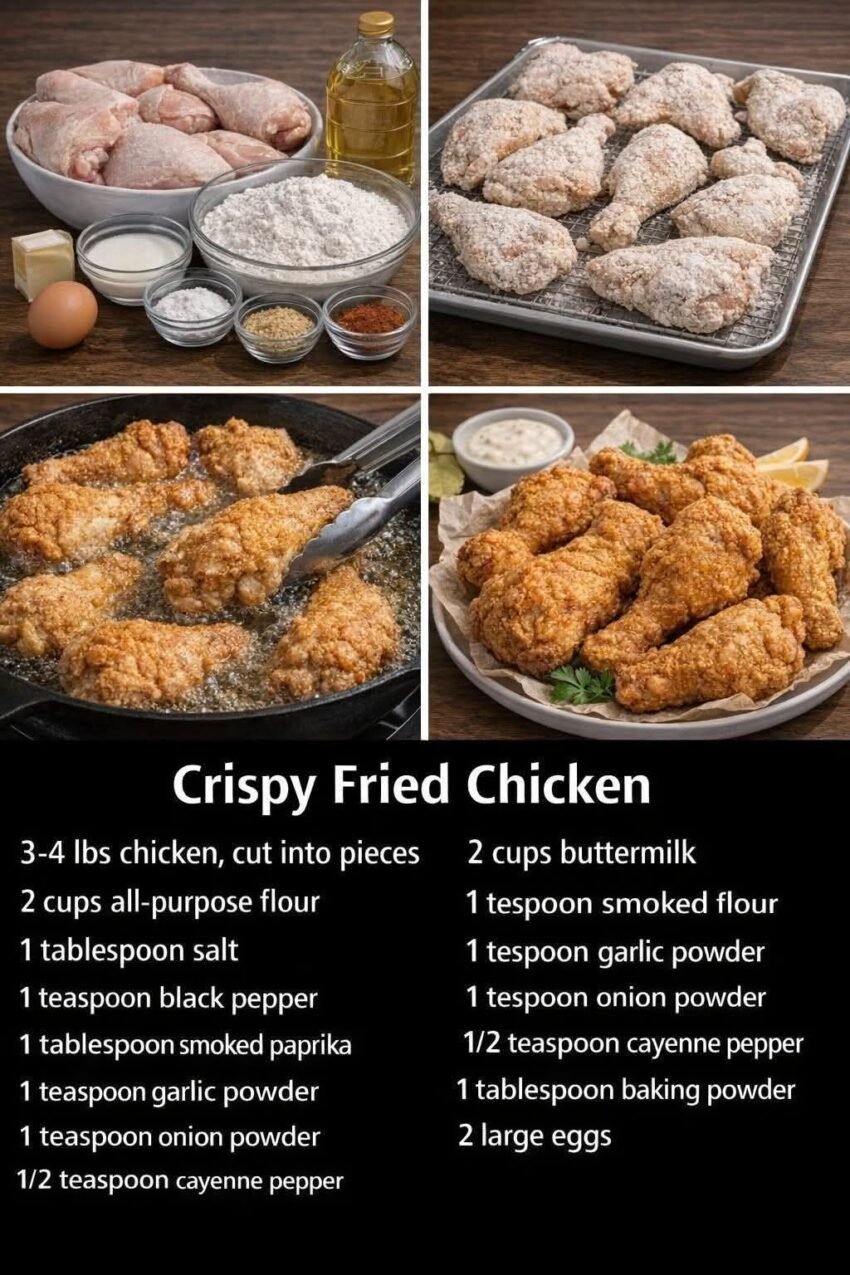 Got you. Here’s a classic crispy fried chicken recipe—juicy inside, shatter-crunch outside. 🍗
