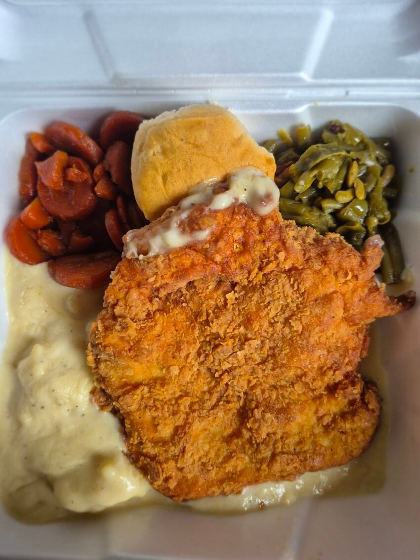 A true comfort-food classic — crispy, golden fried chicken served with creamy mashed potatoes and tender green beans. Perfect for Sunday dinner or a hearty family meal.