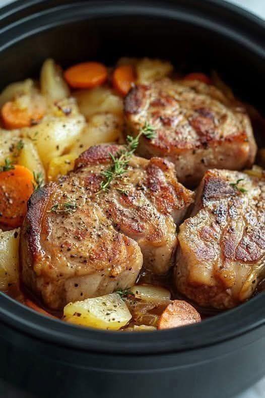 - Sear pork chops 3–4 minutes per side until nicely browned. Remove and set aside.