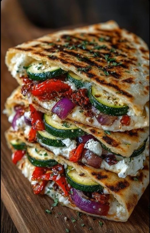 Here’s a flavorful twist on quesadillas with a Mediterranean vibe—fresh veggies, herbs, and melty cheese: