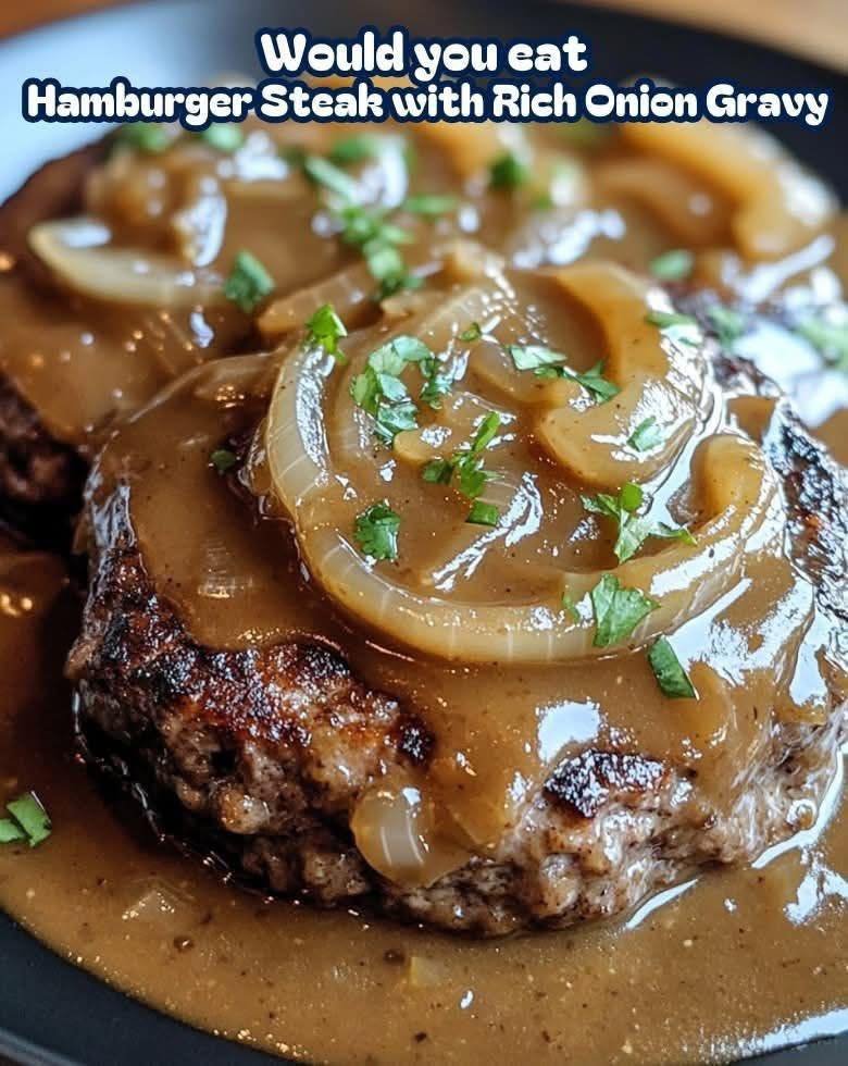 Hamburger Steaks with Onion Gravy is a classic comfort dish—juicy beef patties cooked in a rich onion gravy. 🍔🧅🥘