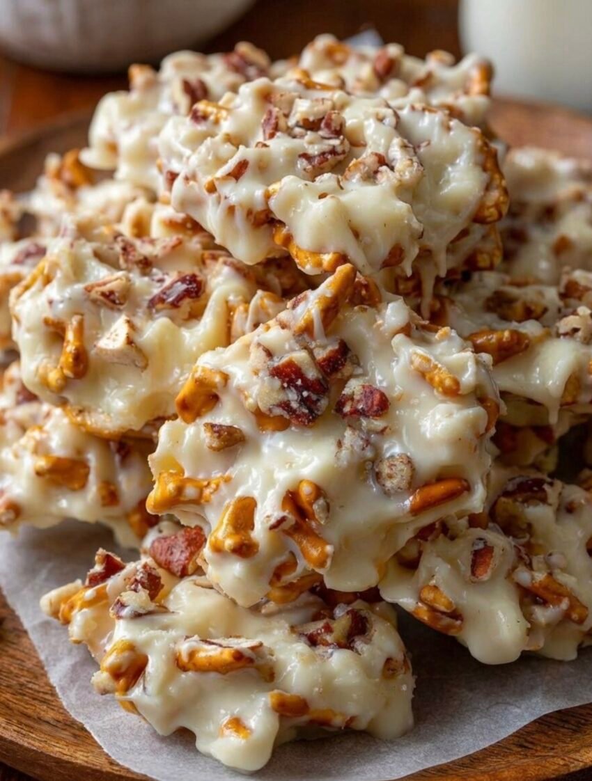 - Drop spoonfuls of the mixture onto a parchment-lined baking sheet. Shape loosely like small haystacks.