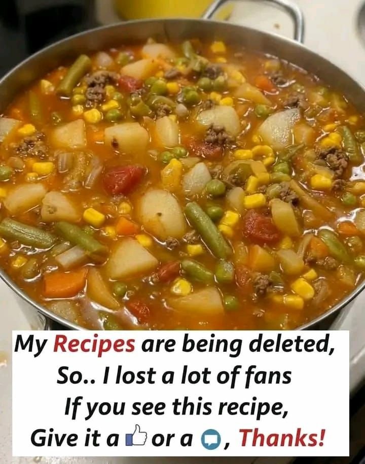 Here’s a warm and filling Hearty Beef and Vegetable Soup — packed with tender beef, fresh vegetables, and rich broth. 🥩🥕🥔