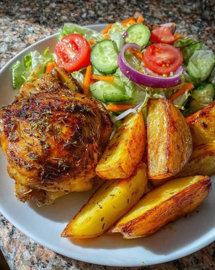 Here’s a complete, flavorful plan for herb-roasted chicken with crispy potatoes and a fresh garden salad—perfect for a wholesome, elegant meal: