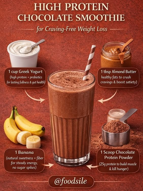 Here’s a High-Protein Chocolate Smoothie that’s thick, filling, and great for breakfast or post-workout recovery.