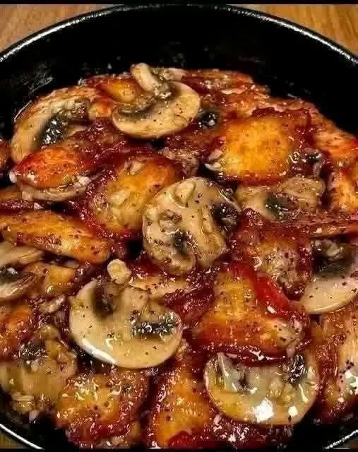Honey Garlic Chicken with mushrooms is a sweet-savory stir-fry style dish where tender chicken is coated in a glossy honey-garlic sauce and cooked with earthy mushrooms.