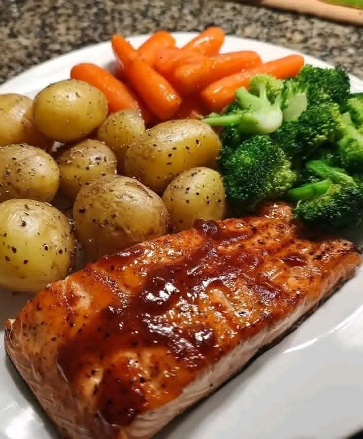 Here’s a full, colorful, and restaurant-style recipe for Honey-Glazed Salmon with Baby Potatoes, Carrots & Broccoli—sweet, savory, and perfectly balanced. 🍯🐟🥦🥕