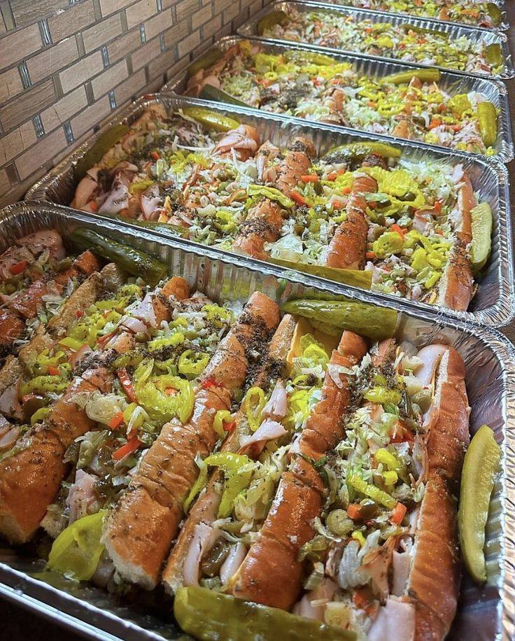 - Chicago style: Poppy seed bun, mustard, relish, onions, tomato slices, pickle spear, sport peppers, and celery salt.