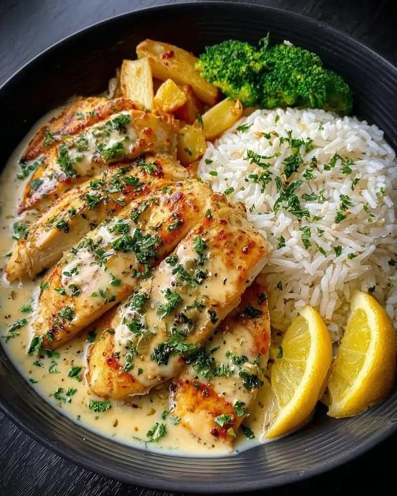 Here’s a bright, tangy, and flavorful dish: lemon chickenβ€”juicy chicken coated in a zesty lemon-garlic sauce.