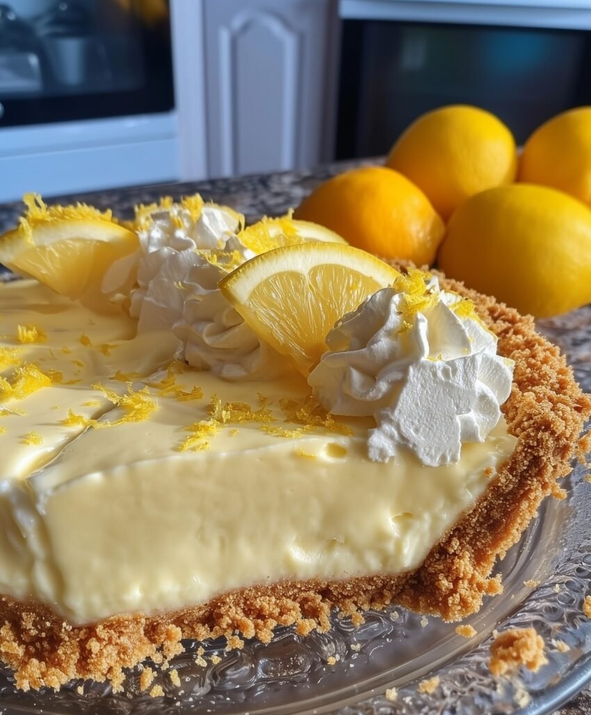 - Pour the lemon mixture into the graham cracker crust and smooth the top.
