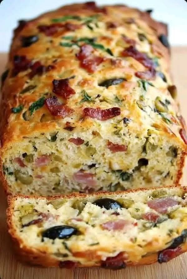 Here’s a savory Olive, Bacon and Cheese Bread recipe — great for breakfast, snacks, or as a side with soup 🫒🥓🧀🍞.