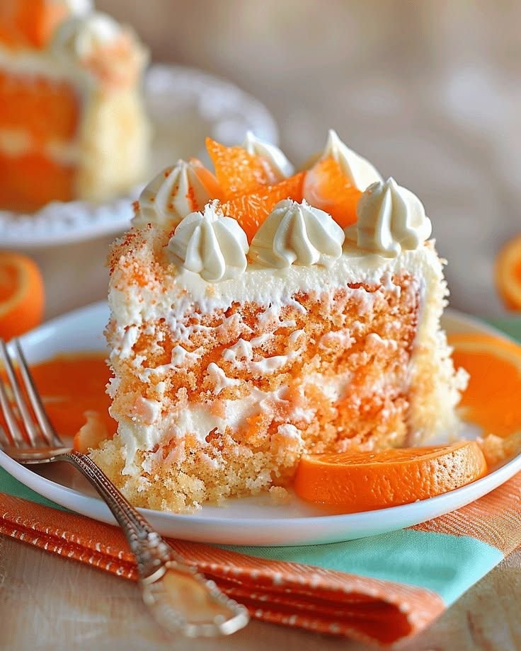 Orange Creamsicle Cake is a soft, refreshing dessert inspired by the classic orange-vanilla creamsicle flavor—sweet orange cake with creamy vanilla frosting. 🍊🎂 It tastes light, citrusy, and creamy at the same time.