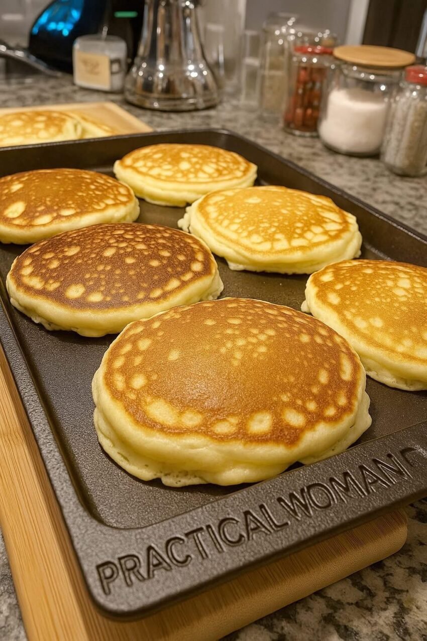 - Keep cooked pancakes warm in a 200°F (90°C) oven while finishing the batch