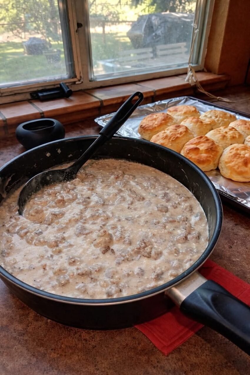 Here’s a recipe inspired by Pioneer Woman’s Sausage Gravy — creamy, savory, and perfect over biscuits 🍴🥖.