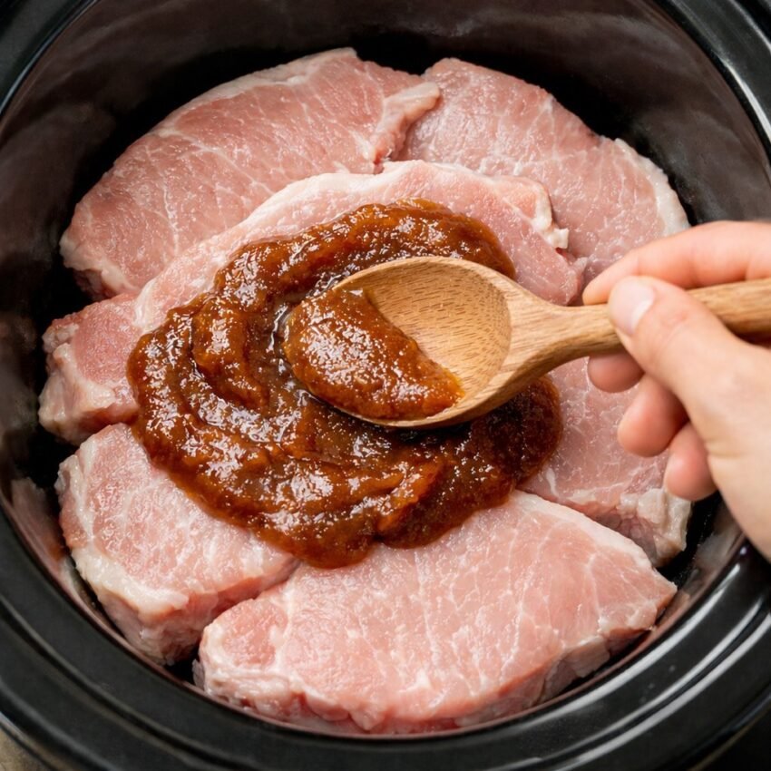 - Add pork chops and cook 3–4 minutes per side until golden brown.