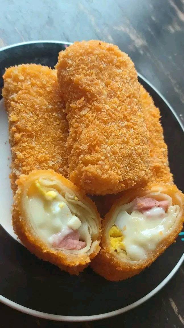 Risoles Mayo (Mayonnaise Risoles) are crispy fried rolls filled with creamy chicken, eggs, and mayonnaise. They’re popular street snacks and party foods in Indonesia. 🥟🧀