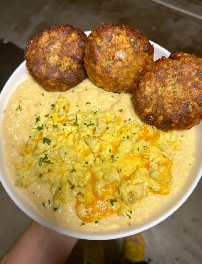 🍳🐟 Salmon Patties, Grits, and Eggs is a hearty Southern-style breakfast that’s flavorful, filling, and fairly simple to make. It’s a classic comfort meal in parts of the Southern United States.