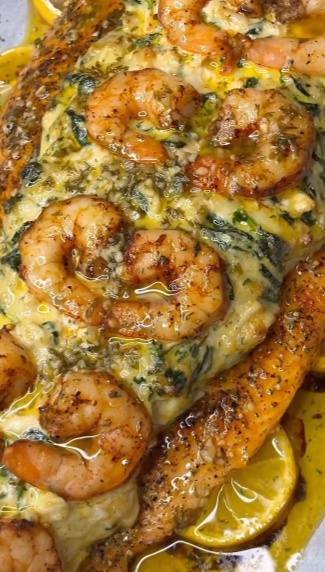 Large shrimp stuffed with a flavorful salmon mixture, baked to perfection — elegant and perfect for dinner or special occasions.
