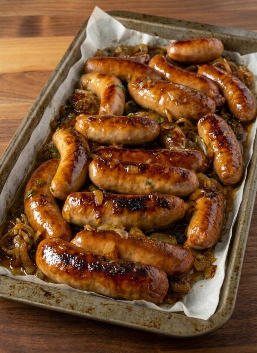 - Add sausages and cook 6–8 minutes, turning until browned.