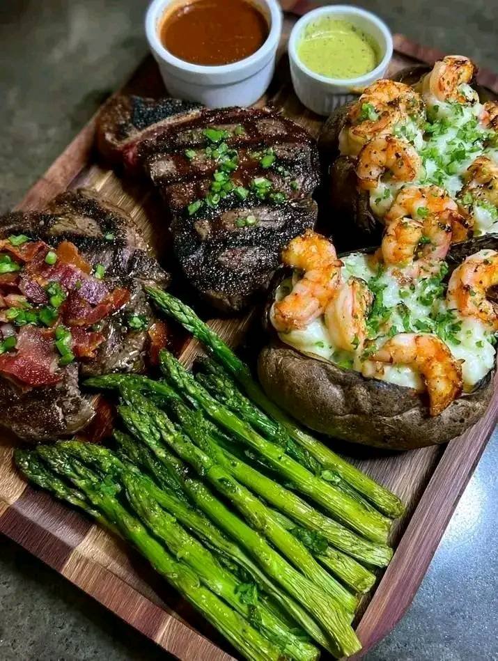 That sounds like a steakhouse-style combo meal — rich, savory, and indulgent. Here’s what each part usually includes:
