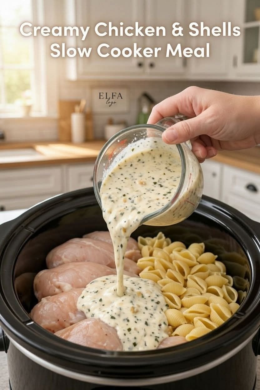 Here’s a simple and flavorful recipe for Slow Cooker Chicken & Shells—a comforting, creamy pasta dish perfect for busy days.