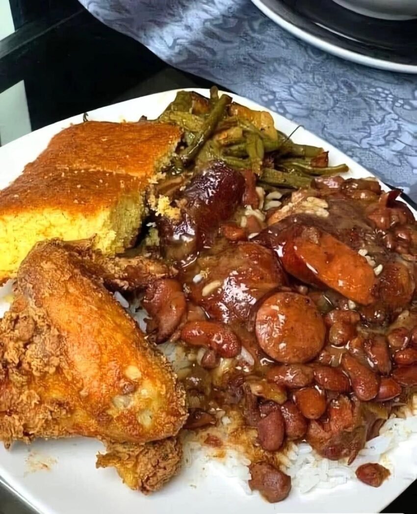 - Staples: Fried foods, greens, beans, cornbread, and sweet desserts.