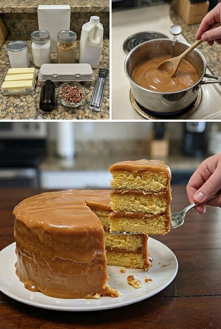 Ah, now we’re talking about a Southern Caramel Cake—a classic dessert from the South! It’s a moist, buttery yellow cake layered and frosted with a rich, gooey caramel frosting, often drizzled over the top for extra indulgence. Here’s a traditional approach:
