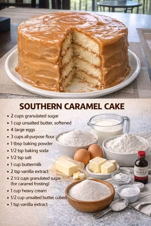 Ah, the Southern Caramel Cake—a classic rich, buttery cake with layers of caramel frosting and a drizzle of caramel glaze. It’s indulgent, slightly sticky, and absolutely decadent. Here’s a detailed recipe for making it from scratch.