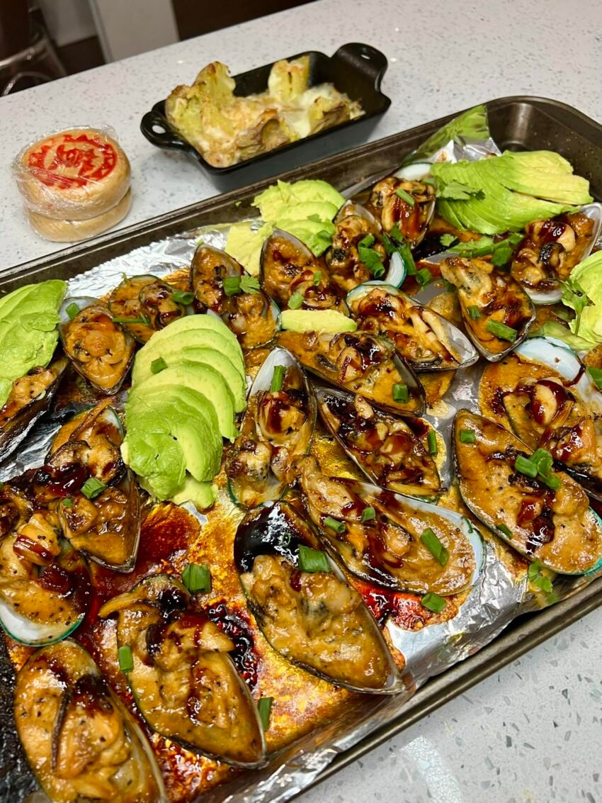 - Slice zucchini lengthwise and scoop out the center to form “boats.”