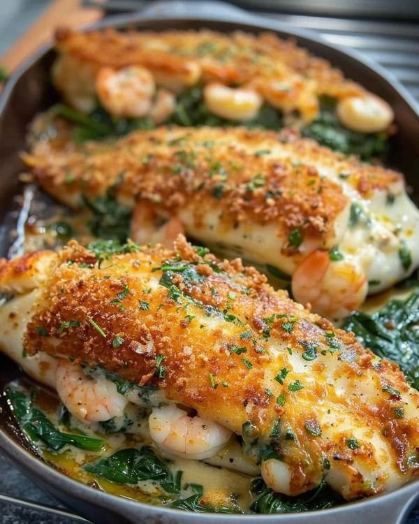 Here’s a rich and flavorful recipe for Stuffed Catfish with Cheese, Spinach & Shrimp — perfect for a special dinner but simple enough for home cooking.