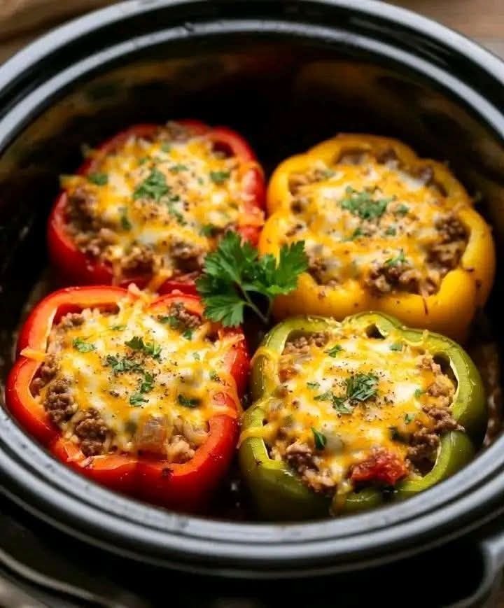 Stuffed peppers are a colorful, versatile dish where bell peppers are filled with a savory mixture of rice, meat, veggies, and seasonings, then baked until tender 🌶️🍚.