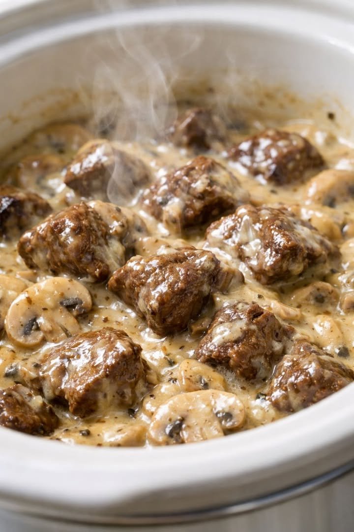 - Simmer 8–10 minutes until cooked through and coated in creamy gravy.